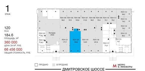 Вашему вниманию предлагаю помещение свободного назначения площадью 184.6 кв. м, расположенный на 1 этаже 7 этажного здания по адресу: Дмитровское шассе 71.Б. В БЦ “Seven One”. В 30 метрах от метро Верхние Лихоборы. Помещение под чистовую отделку. Приточно вытяжная вентиляция. Идеально для: кафе, крафтового бара, пункта приема химчистки, аптеки, дома быта, салона цветов, салона красоты, туристической фирмы, клиентского офиса, шоу-рум и др свободной планировки, высокие потолки до 4.25 м, отдельный вход! Витражное остекление, наземный паркинг, благоустроенная территория. Место под рекламную вывеску.